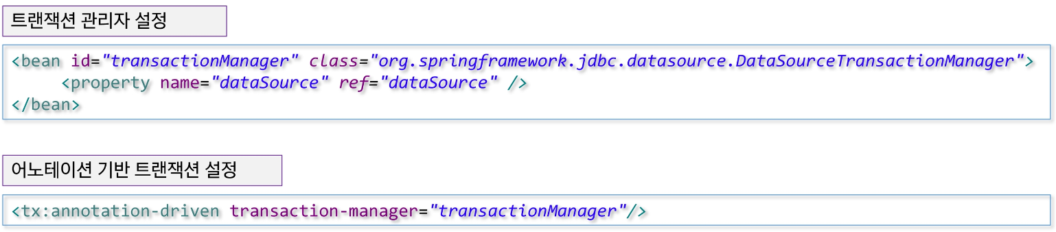 - transactionManager 아이디를 가진 빈은 트랜잭션을 관리하는 객체