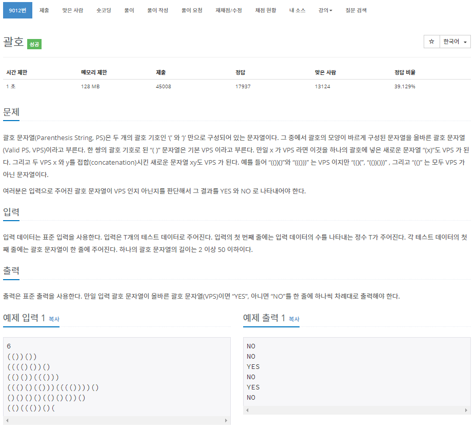 괄호는 항상 '(' 와 ')'으로 이루어지며 한 쌍이 되어야 합니다.