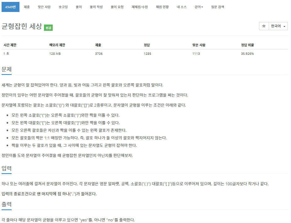 2. 각 문자를 확인하여 (, ), [, ]에 대해서 처리를 합니다.