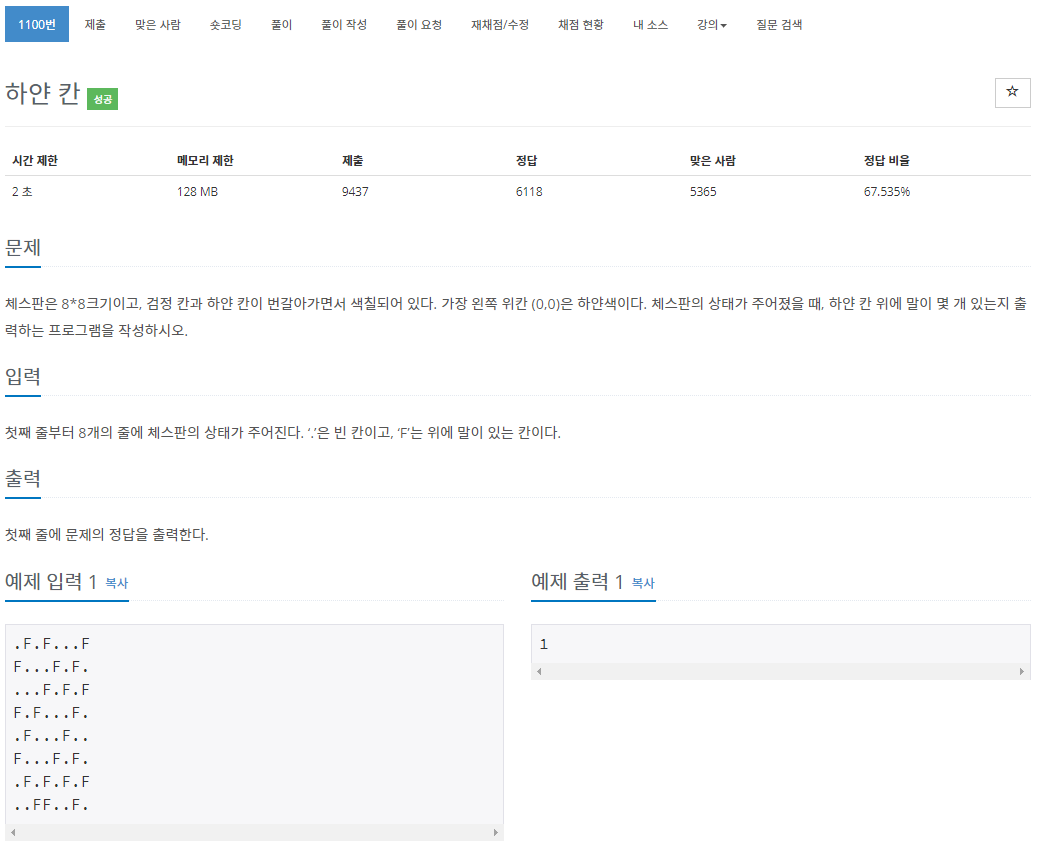 체스판에서 하얀칸에 말이 몇마리 있는지 찾는 문제입니다.
