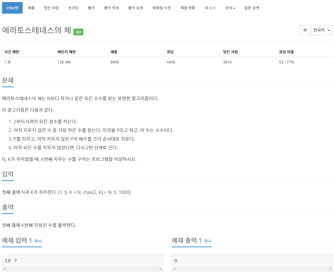 알고리즘을 실행했을 때 k번째 지우게 되는 수를 찾는 문제입니다.