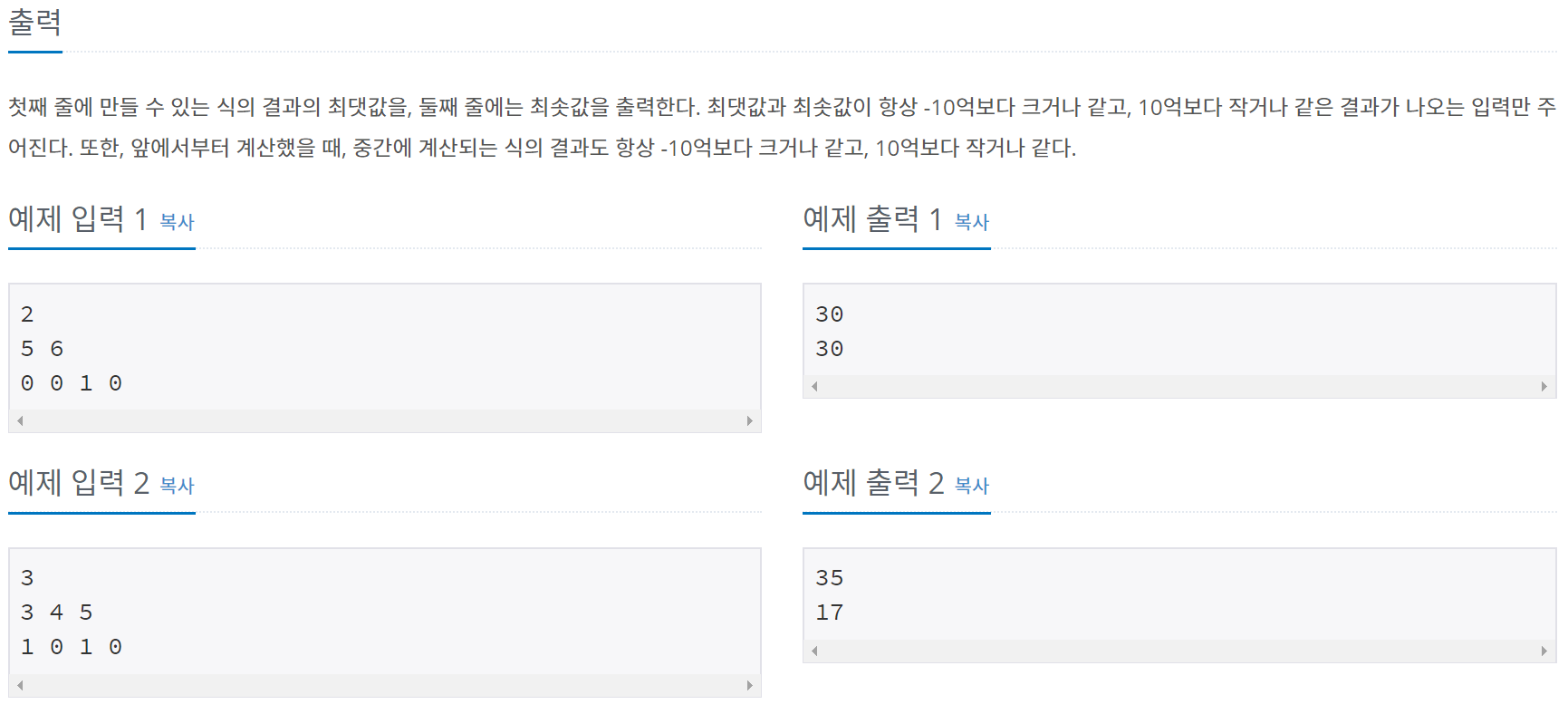 최솟값과 최댓값을 찾는 문제입니다.