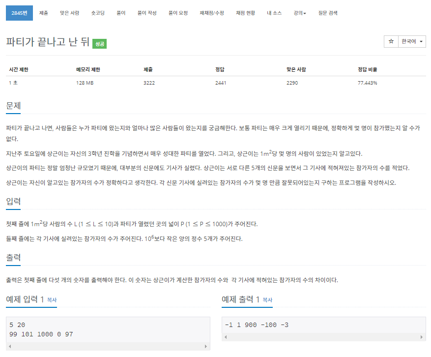 L * P가 나오는 수들과 얼마나 차이가 있는지 출력하는 문제입니다.
