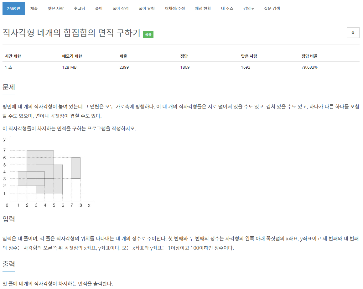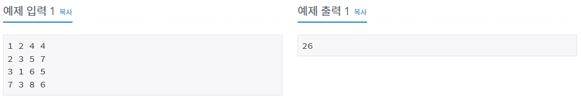 시작점 부터 끝점 까지의 사각형 범위 안에 전부 1을 넣어줍니다.