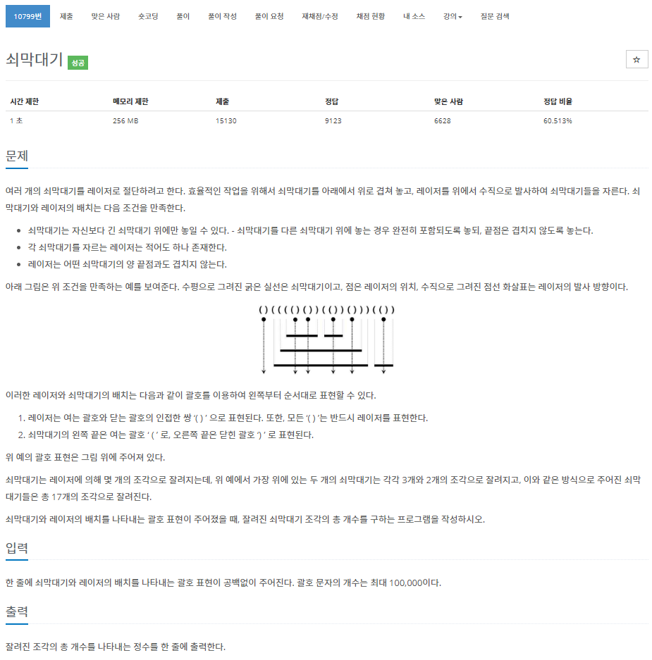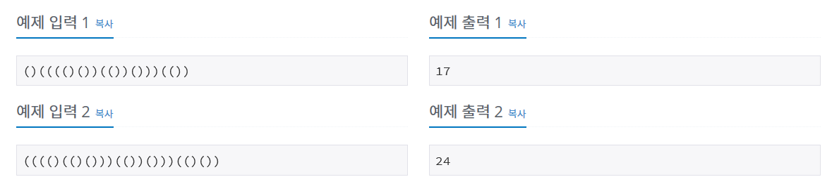 ()가 나오면 쇠막대기를 자르는데 총 몇개의 막대기가 생기는지 구해야합니다.