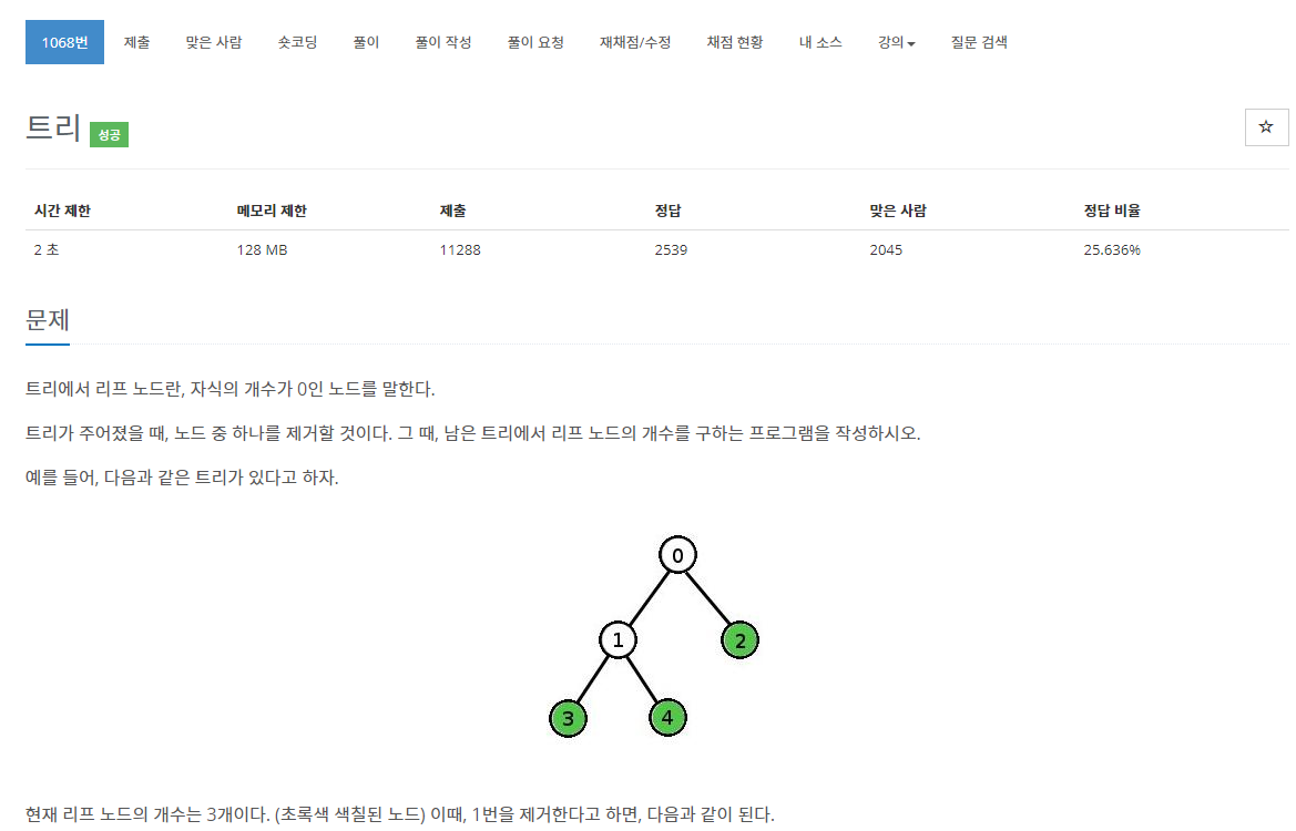 트리에서 하나의 노드를 지웠을 때 루트노드의 개수를 구하는 문제입니다.