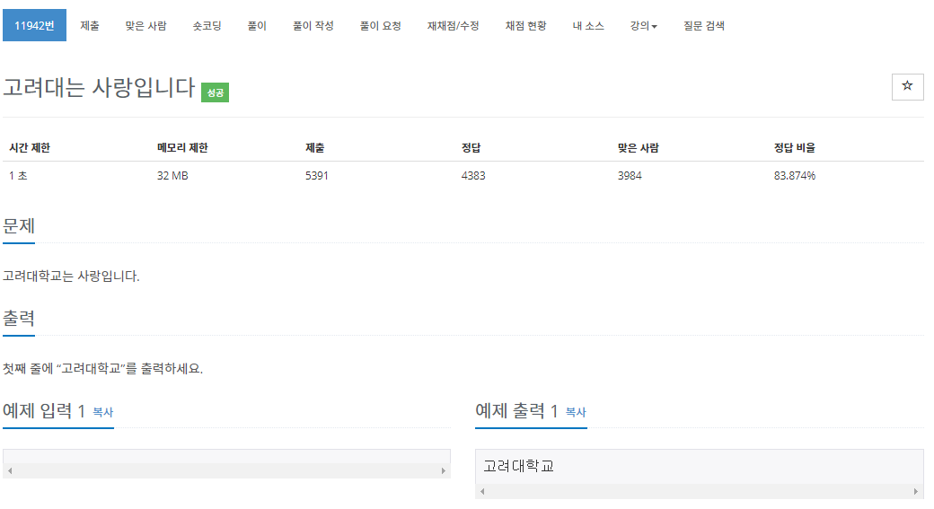 cout << "고려대학교" << endl;
