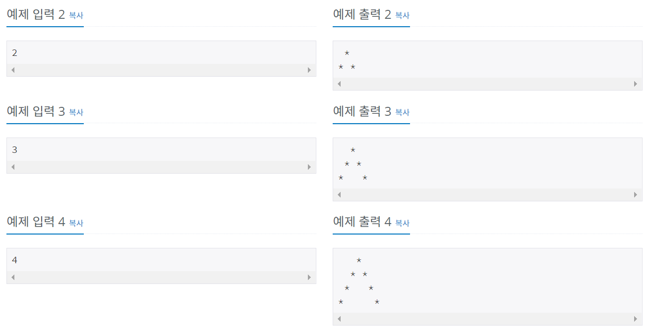 첫번째 줄은 n - 1 만큼의 공백과 별이 한개 있습니다.