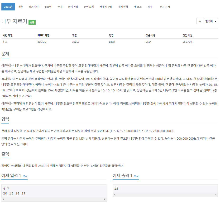M미터의 나무를 가져가기 위해서 전체 나무들이 X가 되게 자를 때