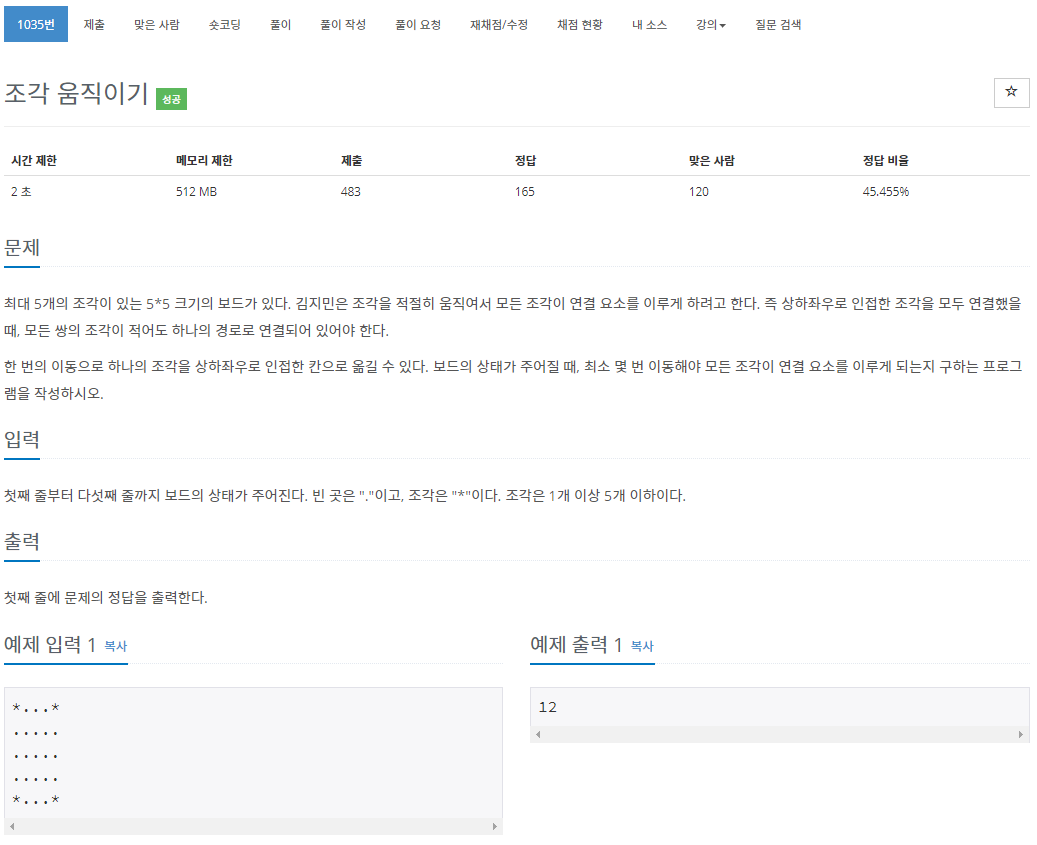 조각을 최소 몇번 움직여야 하는지 찾는 문제입니다.