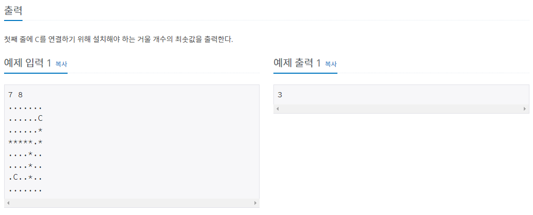C에서 C까지 거울을 몇개 쓰면 레이저로 닿는지 찾는 문제입니다.