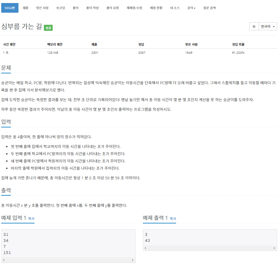 4개의 시간을 분과 초로 나타내는 문제입니다.