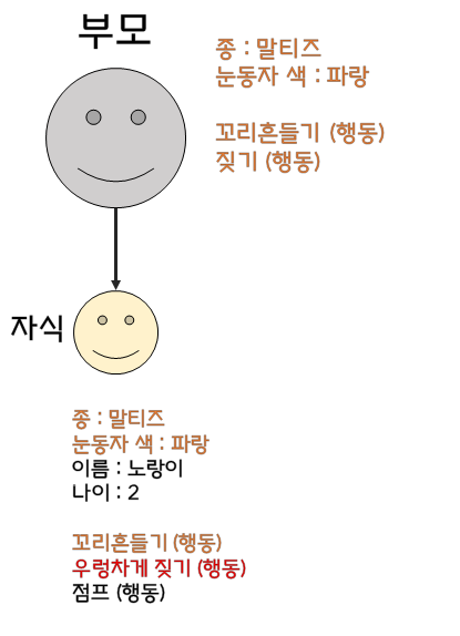 위의 그림에서 메소드 오버라이딩은 부모로 부터 받은 메소드인
