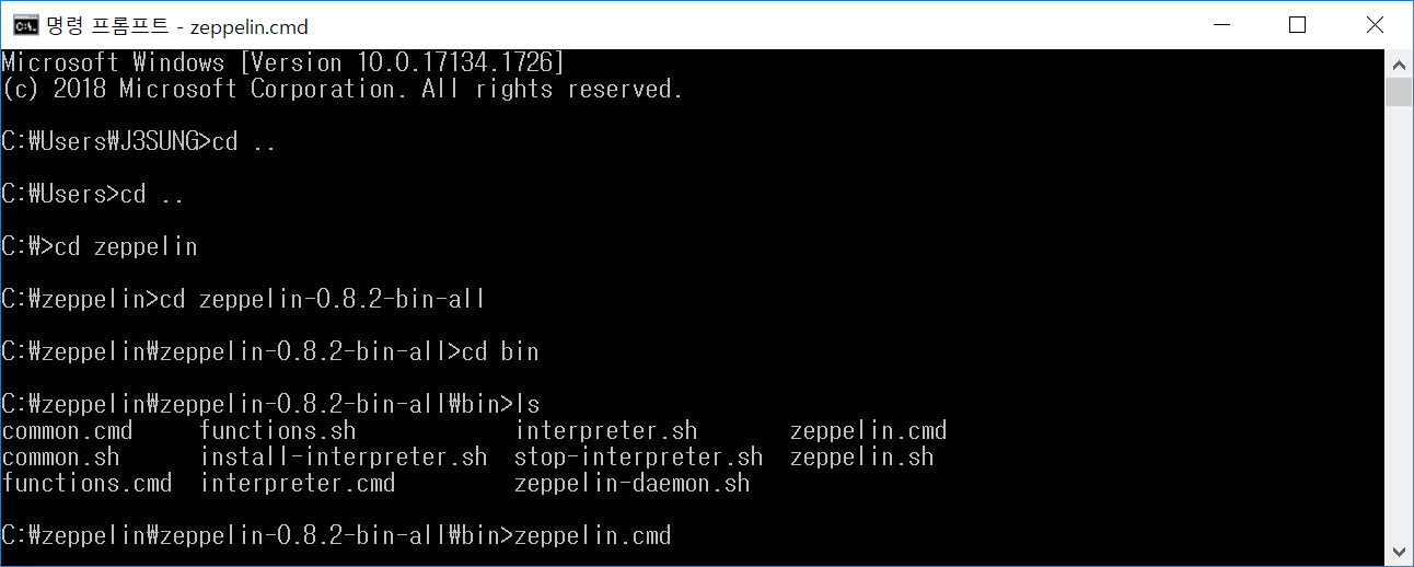 윈도우는 zeppelin.cmd를 실행