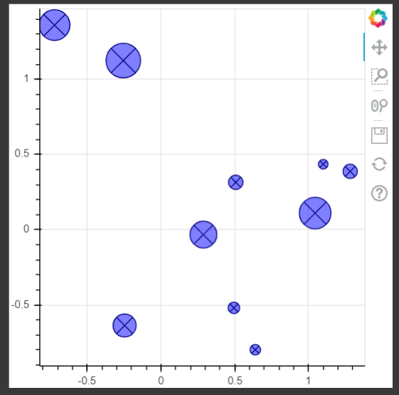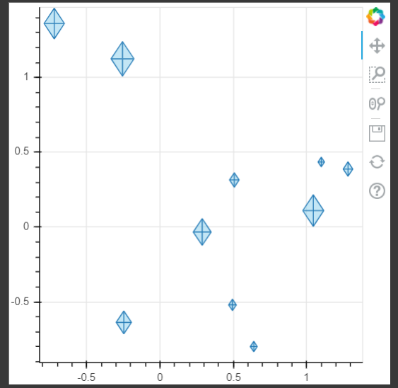p.diamond_cross(x, y, size=sz, fill_color="skyblue", fill_alpha=0.5) #다이아. + 모양 칠색 하늘, 칠색 투명도 50% 산점도