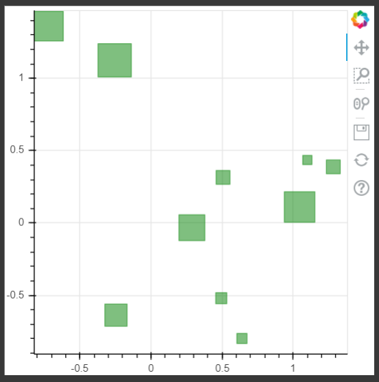 p.square(x, y, size=sz, color="green", alpha=0.5) #사각형 모양 오렌지 투명도 50% 산점도