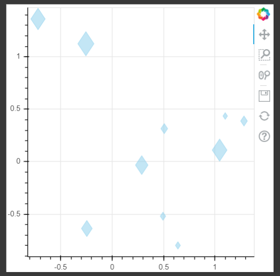 p.diamond(x, y, size=sz, color="skyblue", alpha=0.5) #다이아 모양 하늘 투명도 50% 산점도