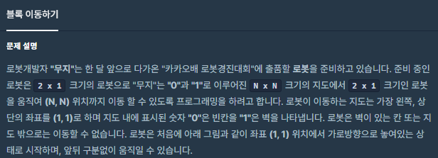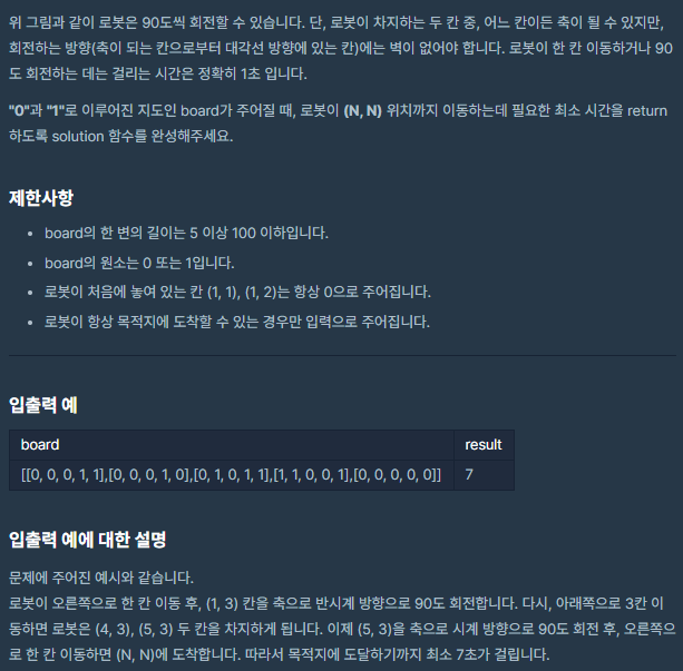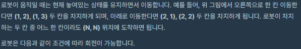 N * N 의 보드에서 로봇을 N * N의 위치로 몇초만에 이동 시킬 수 있는지 찾는 문제입니다.