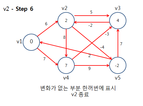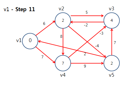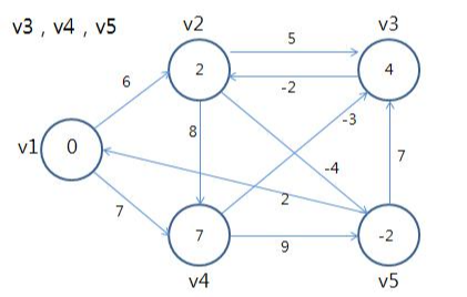 5. 3번 과정을 한번 더 반복한 후 거리가 갱신되는 경우가 있다면 그래프에 음수 사이클이 발생한것을 확인 가능