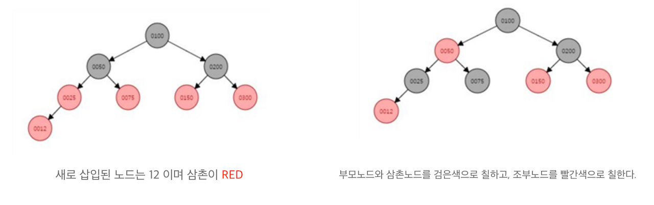 - 형제노드의 왼쪽자식을 블랙으로 칠함