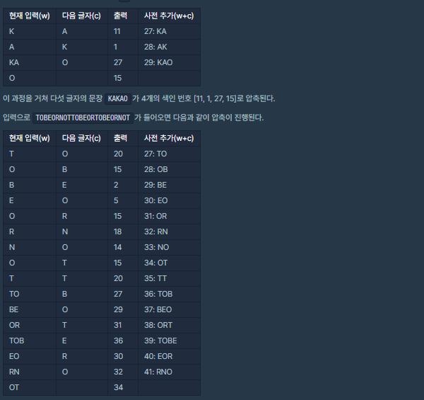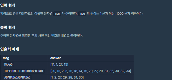 문자가 입력되면 알고리즘에 맞게 압축하는 문제입니다.