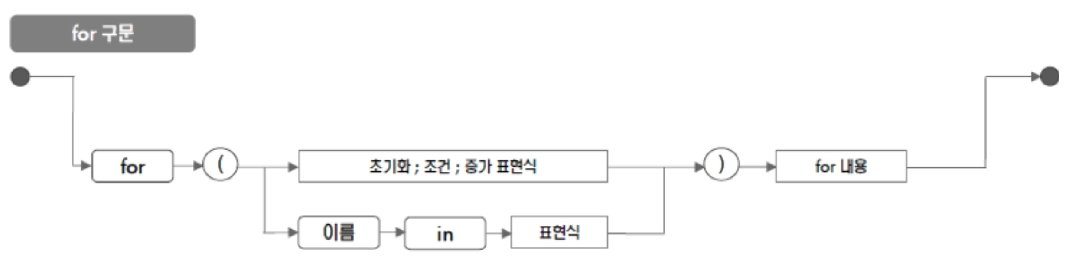 for 구문은 카운터 변수를 사용하는 구문과 in keyword를 사용하는 구문으로 분류