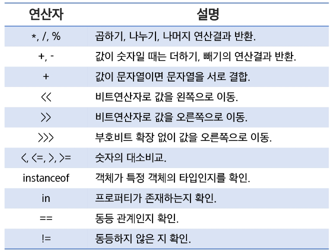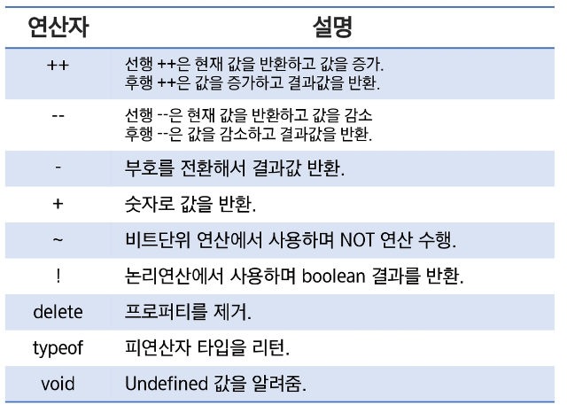 JavaSciprt에서 기본적으로 제공하는 약속된 문자의 표현식을 연산자라 함
