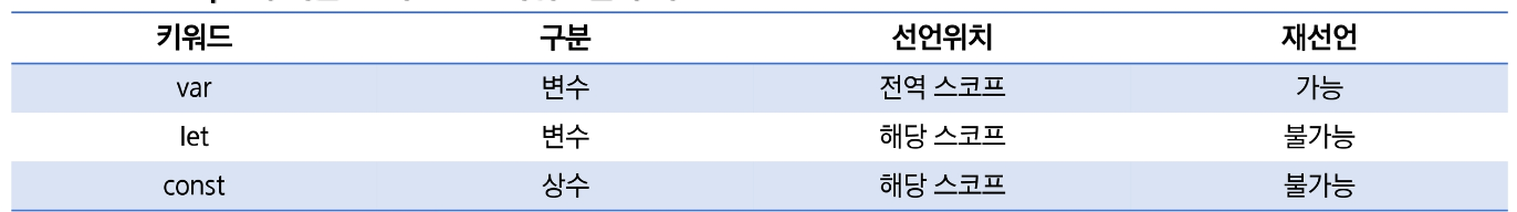 ECMAScript5까지는 식별자에 값을 넣는 변수의 기능은 var 키워드만 사용