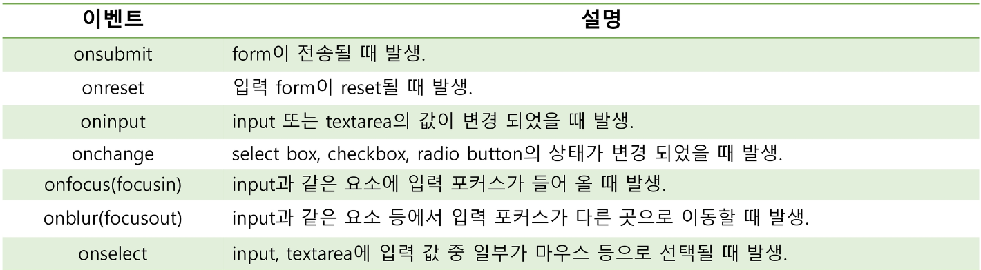 Form 관련 이벤트는 웹 초기부터 지원되어 여러 웹 브라우저에서 가장 안정적으로 동작하는 이벤트