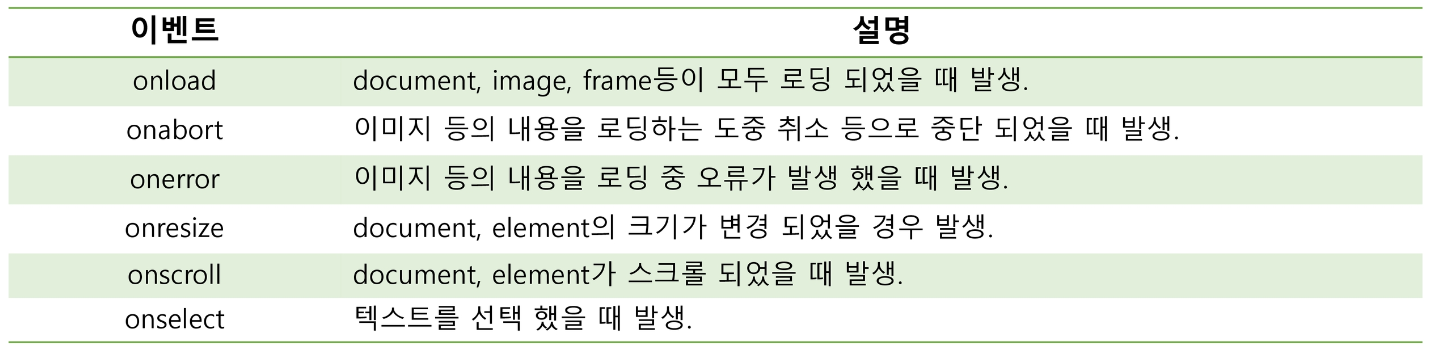 Frame 관련 이벤트는 특정 DOM 문서에 관련된 이벤트가 아니라 Frame 자체에 대한 이벤트
