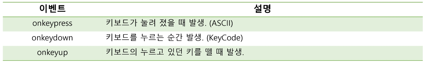 키보드의 커서가 웹 브라우저에 나타나는 지점에서 키보드를 조작할 때 이벤트 발생